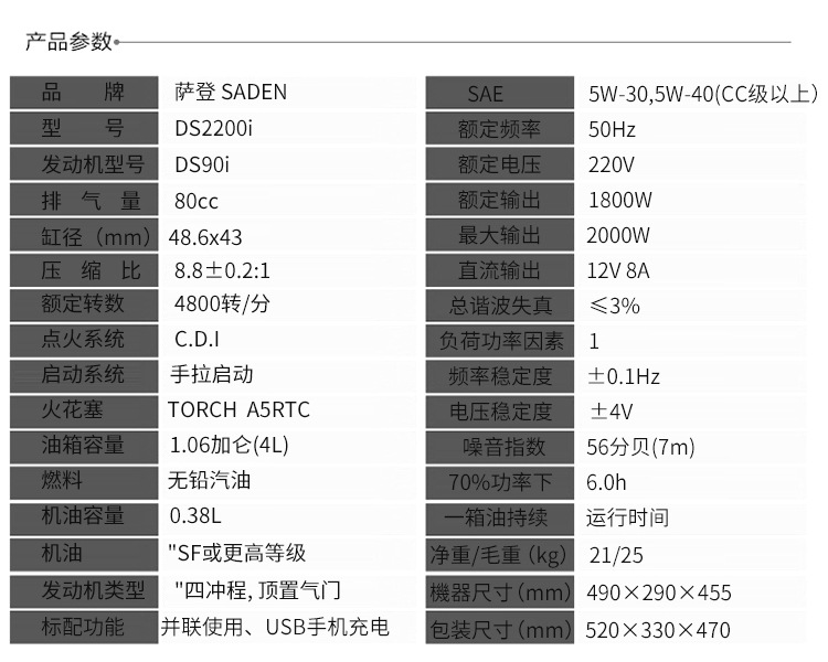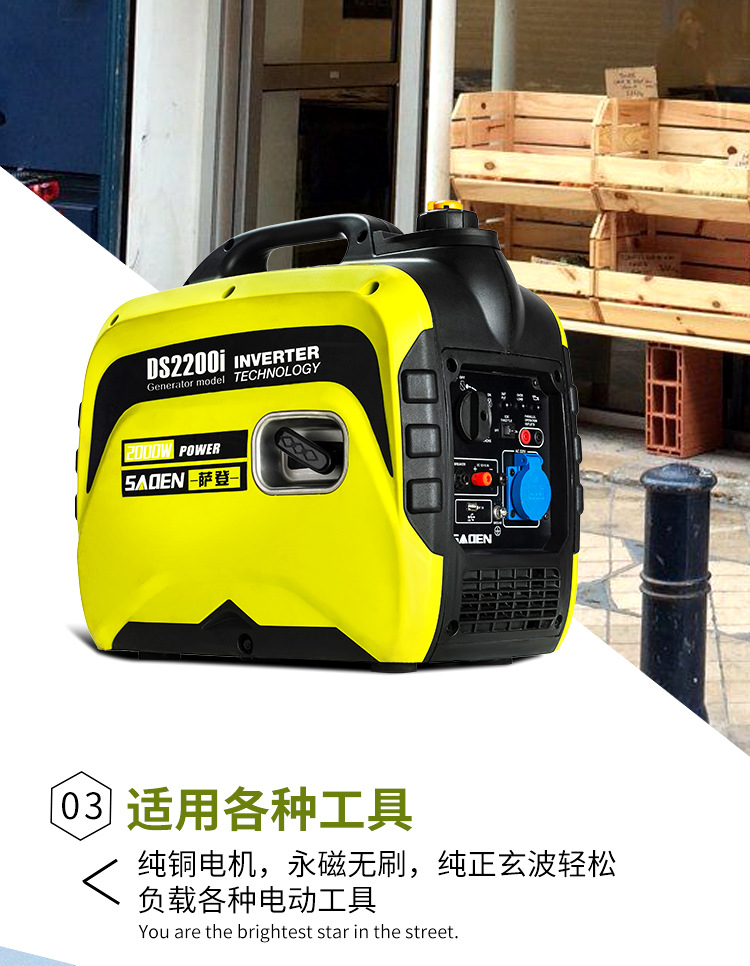 薩登小型發(fā)電機(jī)220v家用小型2KW靜音戶外房車手提便攜式2千瓦變頻